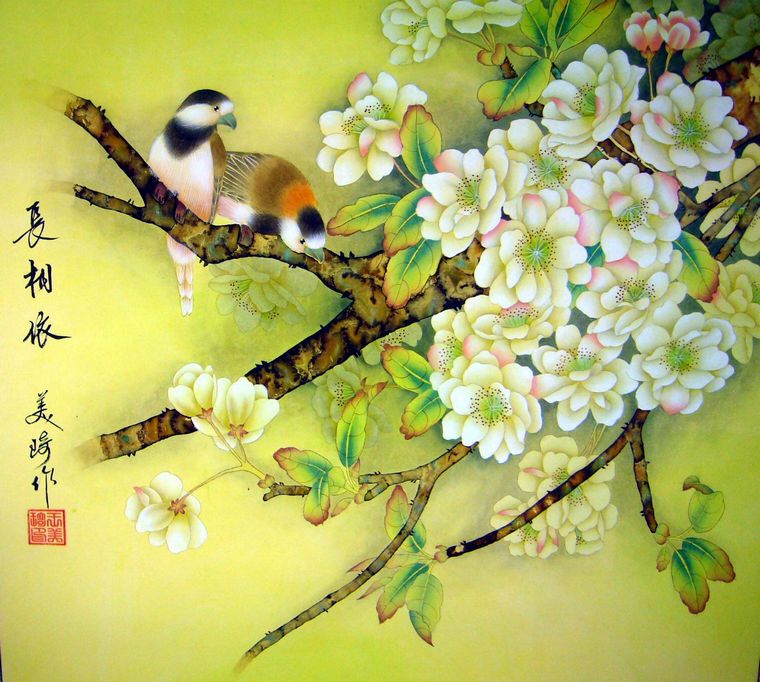 工笔画鸟语花香